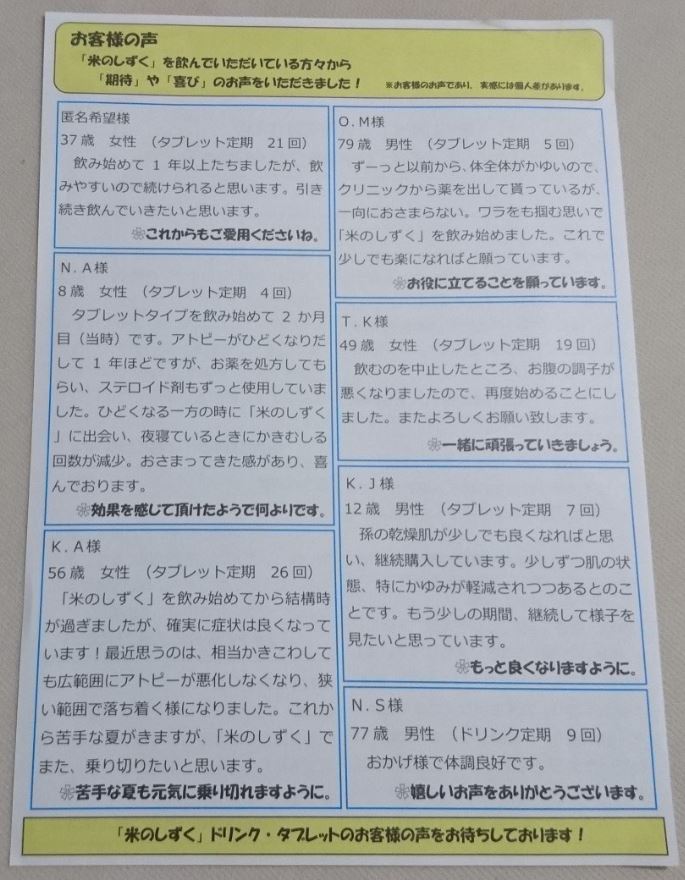 実際に米のしずくのドリンク・タブレットを使用している方の感想や