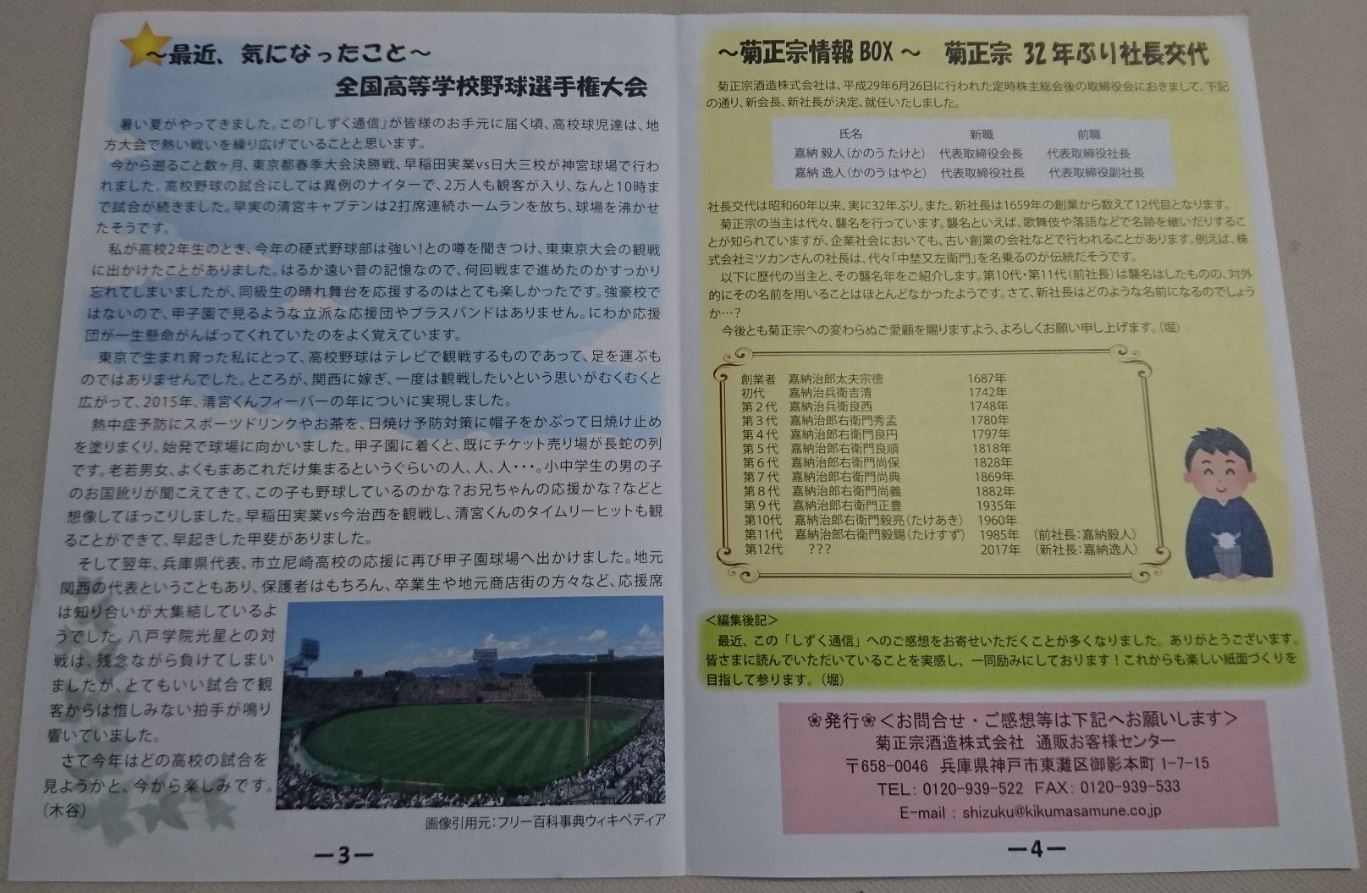 裏は高校野球や、米のしずくを作った菊正宗酒造株式会社の情報など