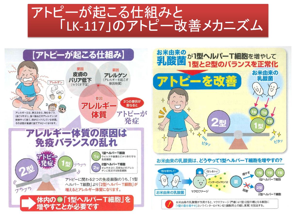 LK-117はこのうち「アレルギー体質」の改善によりアトピーを改善するとのこと。