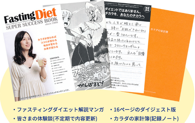 また、初めて購入される方にはファスティングダイエットを解説した本を含む