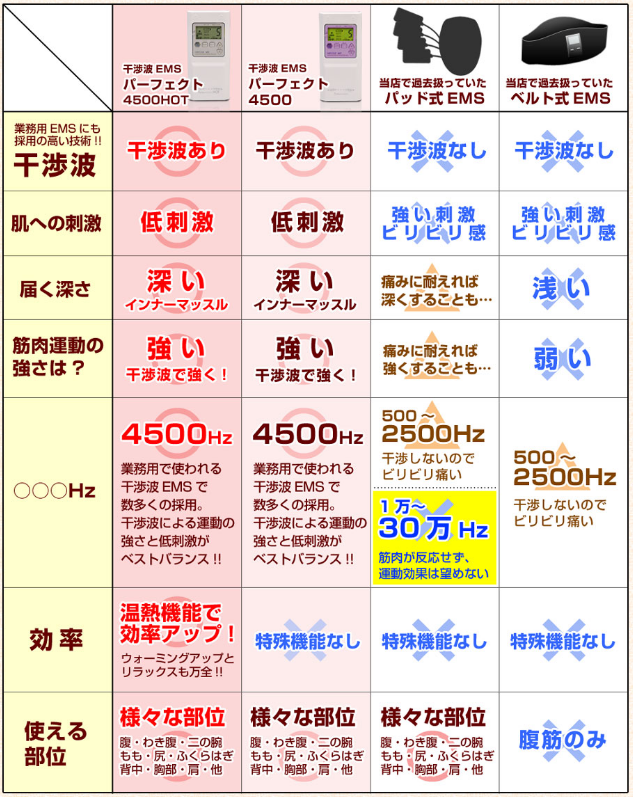 このパーフェクトが他のEMSと違うのは干渉波を使っていること